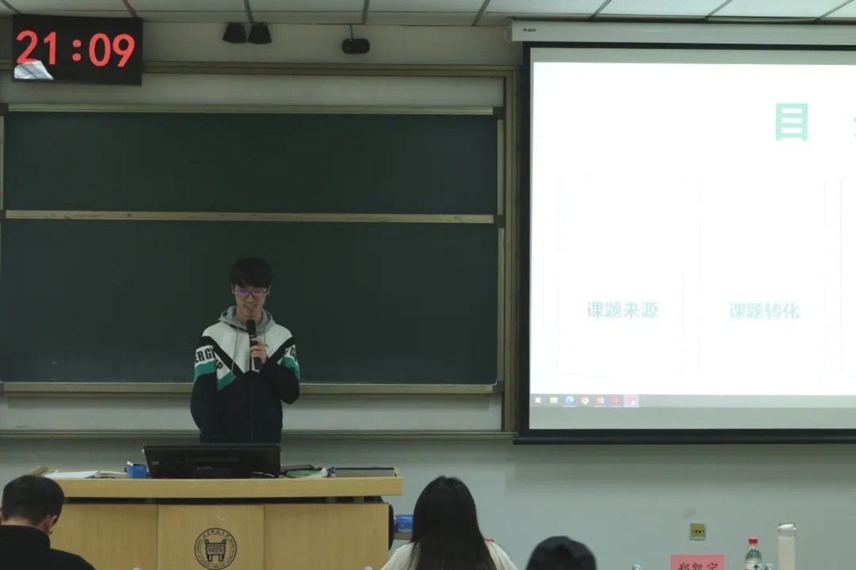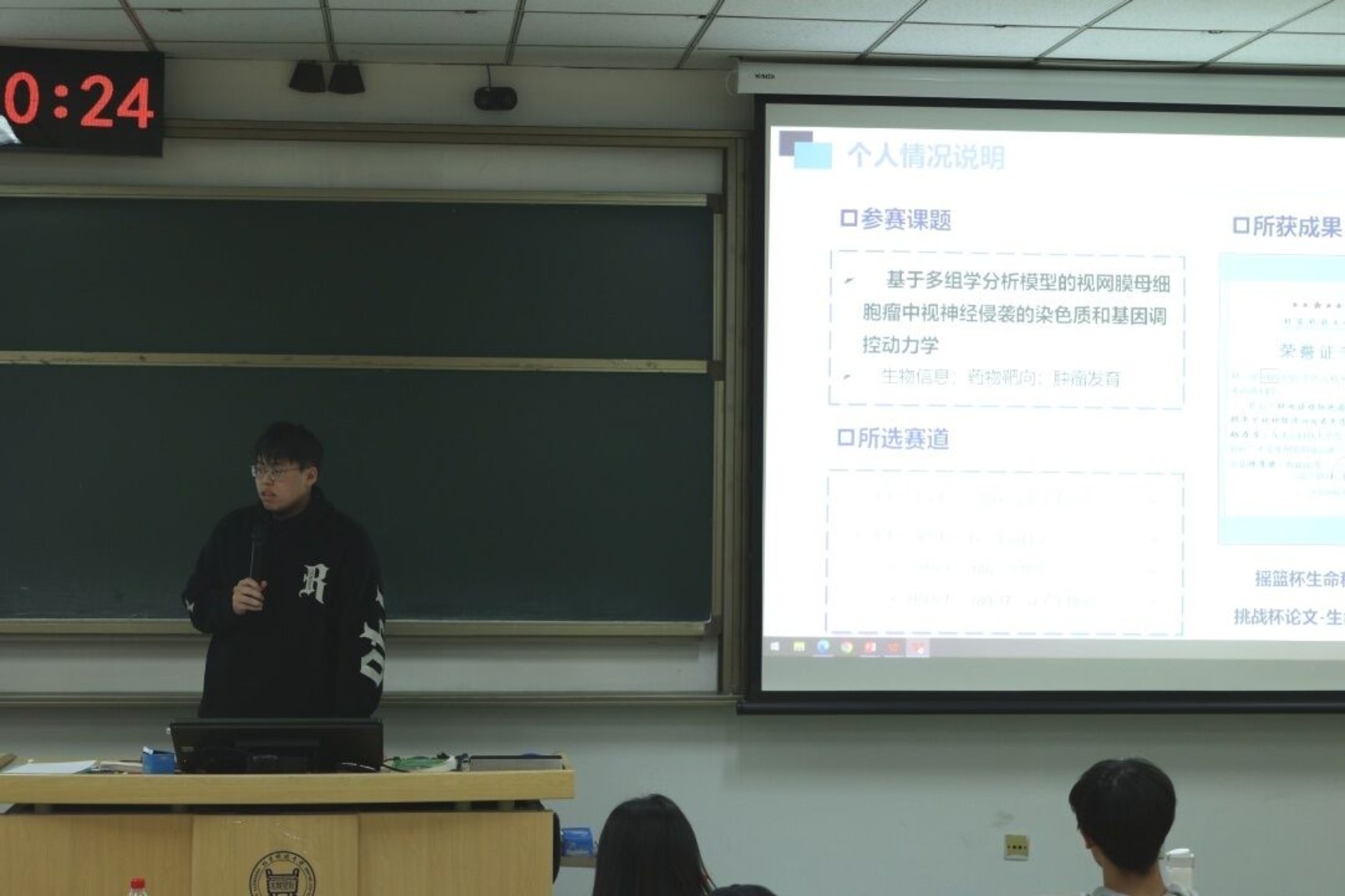 刘鹏学长首先向我们介绍了自己丰富的科研竞赛经历,再从项目的来源方面向我们讲述了寻找课题方向的分析方法,在赛前要做好丰富的调研和准备。此外,他还提到,充足的准备是事情成功的重要基石。在备赛的过程中要注意比赛报名截止的时间,提交材料的撰写,以及答辩PPT的制作等细节问题。