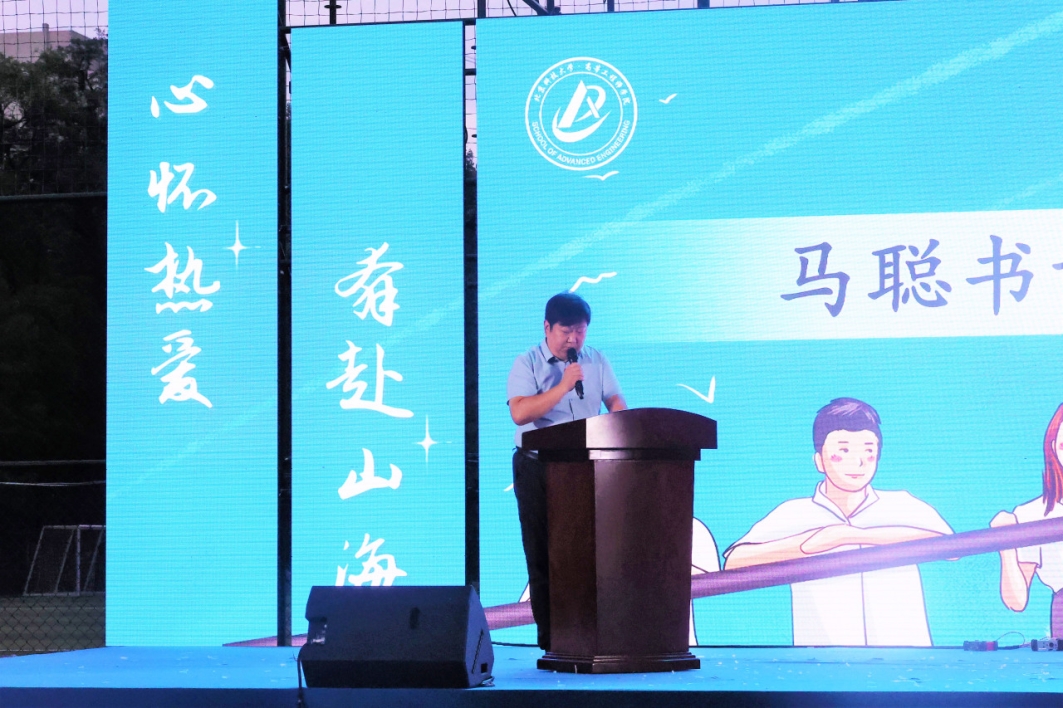 学院党委书记马聪在毕业生晚会致辞中向圆满完成学业的毕业生同学们致以美好祝愿,向所有为同学们成长成才耕耘奉献的师长亲友们,致以衷心感谢,希望同学们在开启一段新的人生征程时在行囊中备上来自北科大的三样东西——一块石、一抔水和两抹鲜明色彩。