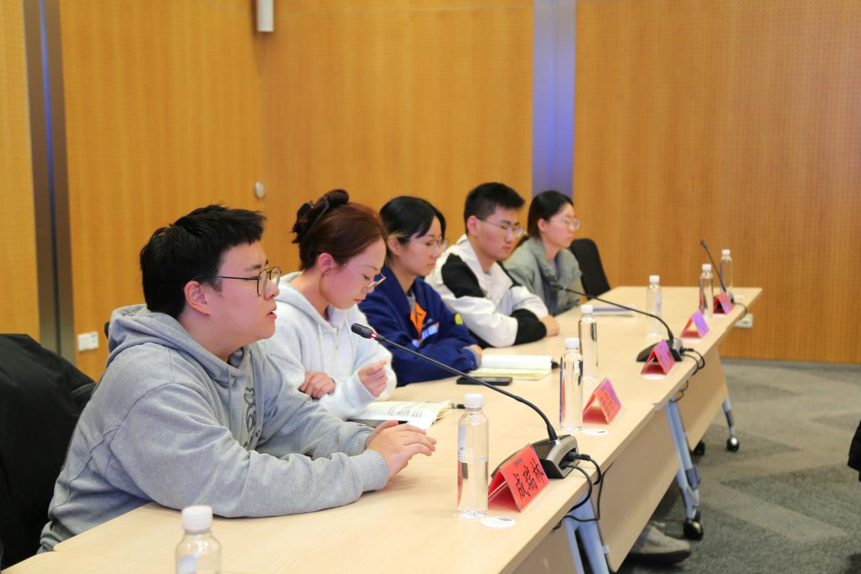 22级、23级工程硕博学生代表邹璇、贾云浩、袁小棋、孟吕情、成瑞林分享入企实践以来的阶段性成果与心得体会。