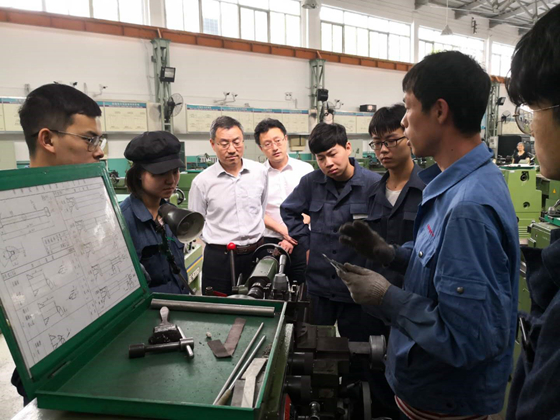 金工实习基地进行工作调研,党办校办主任郑安阳陪同调研。