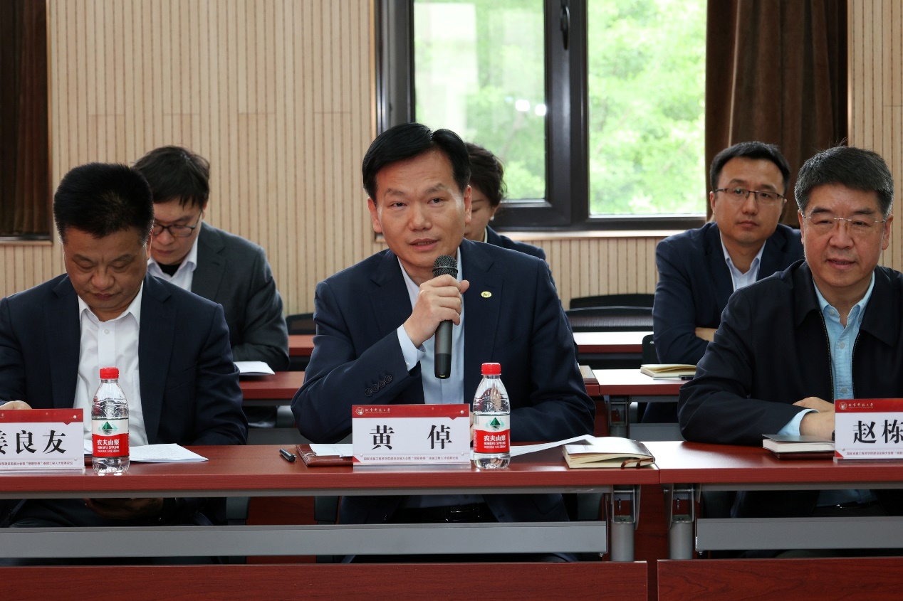 中国钢研科技集团有限公司副总经理赵栋梁、中国有研科技集团有限公司副总经理黄倬、北京汽车集团有限公司副总经理谢伟、中国黄金集团有限公司副总经理姜良友、中国五矿集团有限公司人力资源部副部长谭兆奎、中国融通科学研究院集团有限公司人力资源部部长徐钊、中国兵器装备集团有限公司人力资源开发中心副主任庞婉君7位理事单位代表分别结合各单位实际情况,分享了卓越工程师培养经验,并提出了对国家卓越工程师学院建设的思路与建议。