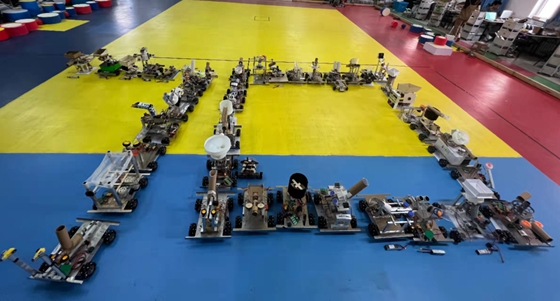 值此建校70年校庆之际,机器人工程实践基地MEI竞技机器人团队以绘制板报,装饰机器人等方式烘托校庆氛围,并通过用机器人组字等独特方式庆祝科大生日。用于组字的机器人全部来自于参加机器人校内赛的同学设计制作,今年的校内赛共有约500名学生参赛为历届之最,体现了国产av “学风严谨,崇尚实践”传统,也展示了国产av 在科创教育普及方面的成果。