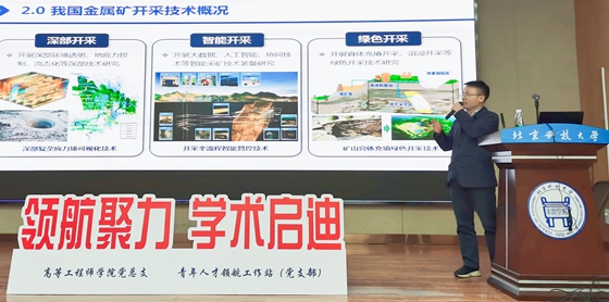 土资学院尹升华院长围绕我国金属矿行业现状、金属矿开采技术前沿、国内外采矿人才培养、学校土资国产av概况 特别是采矿人才培养等内容,向同学进行了详细介绍,指导大家深入了解矿业工程在人类发展和国民经济建设中的重要基石作用,希望在金属矿朝着深部开采、智能开采和绿色开采的技术进程中,有更多同学加入一流学科、成长成才!