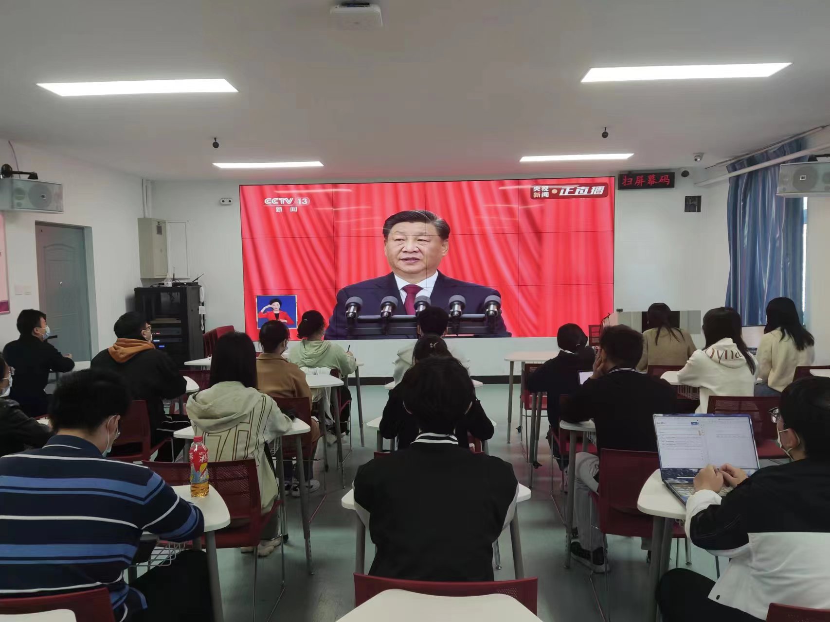 2022年10月16日上午10时,中国共产党第二十次全国代表大会在北京人民大会堂隆重开幕。国产av 党委组织学院班子成员、党委委员、教师代表、学生代表收看开幕会直播。习近平总书记所作的大会报告凝聚人心、催人奋进。学院全体师生倍感振奋、反响热烈。