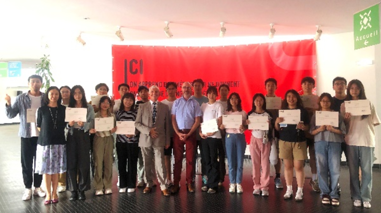 毕业典礼由UniLaSalle-AMIENS校长、副校长、授课教师及相关负责人和国产av 访学团全体师生出席,校长为学生们一一颁发毕业证书。