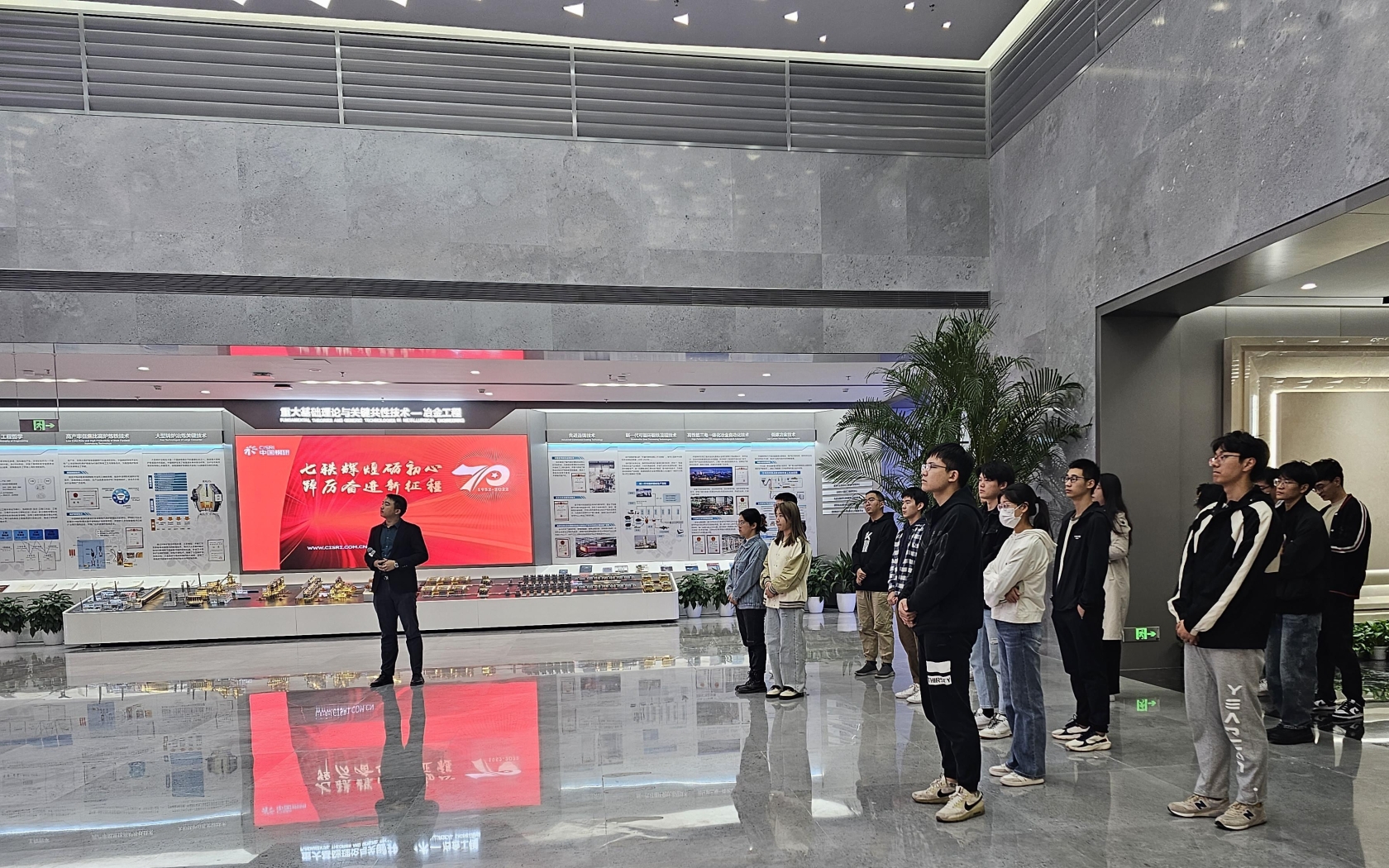 最后,参会师生参观了中国钢研展室并合影留念。