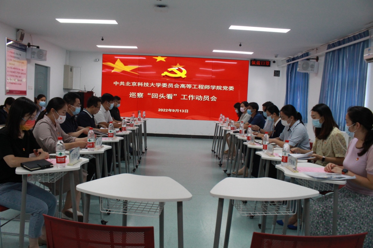动员会上,蒋韬介绍了巡察“回头看”的重点任务和总体安排。本次巡察“回头看”主要检查三个方面的内容。一是对照党委巡察组反馈意见,重点检查被巡察党组织落实整改主体责任情况。二是对照教育部党组第二巡视组巡视反馈意见,重点检查被巡察党组织整改落实工作情况。三是对照习近平总书记给学校老教授重要回信精神,看被巡察党组织在学习贯彻总书记重要回信精神方面是否走深走实,见行见效,是否全面贯彻党的教育方针,落实立德树人根本任务,是否与教育教学、管理服务等工作深度融合。本次巡察“回头看”时间为2周左右,巡察组将严格按照有关规定,通过开展巡察整改满意度测评、听取汇报、列席会议、召开座谈会、受理信访、个别谈话、查阅资料、走访等方式进行。巡察“回头看”期间,巡察组严格遵守巡察工作纪律,带头落实中央八项规定精神,按照规定开展工作。