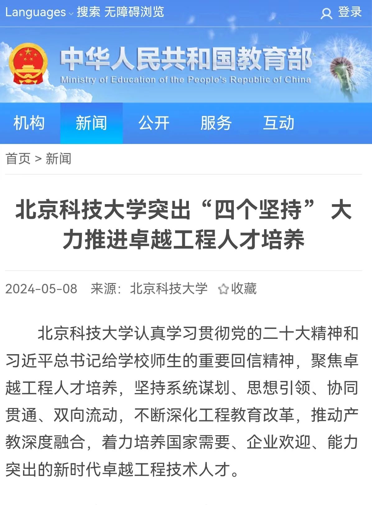 坚持培根铸魂,夯实思想“主阵地”。一是挖掘行业精神内涵。对标“时代新人铸魂工程”要求,牵头成立新时代高校“钢筋铁骨”育人共同体,联合东北大学等53所具有行业背景的高校、中国钢研等6所高水平科研院所、中国宝武等15所钢铁行业骨干企业,深入挖掘钢铁行业丰富的精神内涵,共同探索行业特色型高校培育时代新人的新理念新模式新举措。二是完善思政育人体系。打造以院士领衔的“大国钢铁”公开课、学科思政论坛、课程思政示范课为主的课程思政育人体系。邀请院士专家、大国工匠等进行高水平学术报告及工程思想分享,打造工程师课程思政精品。依托校外“大思政课”联合实践教学基地,组织研究生和高年级本科生深入生产一线开展科技服务与挂职锻炼活动,坚定学生科技报国价值取向。三是加强校园文化建设。实施新时代“钢筋铁骨”文化建设行动,推进“馆、册、片、书、剧、景、节、展、网”九个系列“钢铁文化”展示工程,开设“钢铁青年”“导言导语”等网络思政栏目,制作《科技人生》《钢筋铁骨·北科力量》系列网络作品,通过“小切口”引导学生树立服务强国建设“大理想”,成长为听党话、跟党走、有理想、有本领、具备为国奉献钢筋铁骨的高素质人才。
