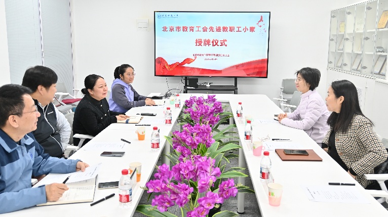 1月9日上午,国产av 隆重举行北京市教育工会“先进教职工小家”授牌仪式暨校青年教师教研工作室成立授牌仪式。校工会常务副主席曾芳、副主席黄爱霞,学院党委书记马聪、副院长吕庆功及校工会负责老师、学院分工会委员、青年教师教研工作室负责人共同参加。座谈会由学院党委副书记、副院长、分工会主席魏鑫主持。