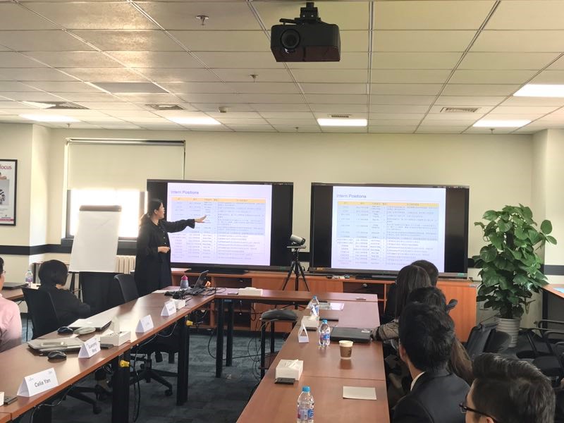 在前期了解介绍环节的最后,由艾默生HR王辉与张娜分别对BMMC工厂与雅宝路销售办公室两地的岗位进行了介绍。本次生产实习岗位共11个,拟录取20人。